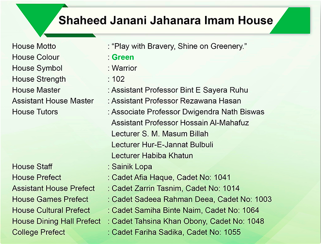 SHAHEED JANANI JAHANARA IMAM HOUSE